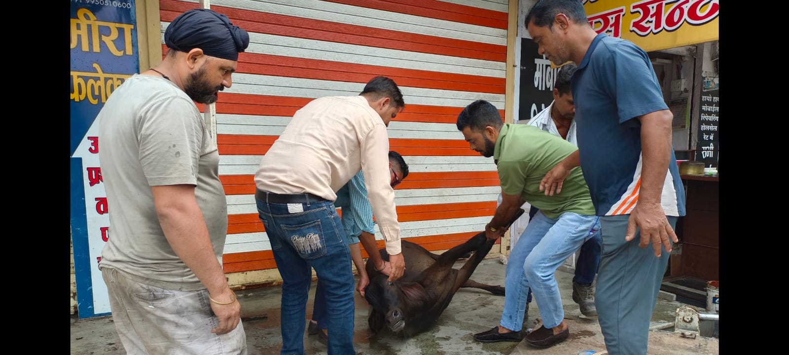सीधा सवाल। चित्तौड़गढ़। शहर स्थित सुभाष चौक में एक दुकान के बाहर गाय के बेहोश हाल में पड़ा मिलने और तड़पते देख चित्तौड़गढ़ शहर कांग्रेस हेरिटेज जोन मंडल अध्यक्ष इम्तियाज हुसैन लौहार द्वारा तुरंत उसकी देखरेख करते हुए लोगों की मदद से पशुचिकित्सालय पहुँचा कर उपचार करवाया। इम्तियाज हुसैन लौहान ने बताया कि टैंपो स्टेण्ड पर एक दुकान के बाहर गाय तड़प रही थी, उसके मुँह में से झाग निकल रहे थे और बेहोशी की हालत में थी तो उन्होंने तुरंत आस पास से पानी की व्यवस्था की और उसके ऊपर डाला, जिससे गाय थोड़ी हिली-डूली। उन्होंने तुरंत ही कुछ कार्यकर्ताओं को मौके पर बुलाया और नगर परिषद की पशु वाहन को फोन किया। गाड़ी के पहुँचने पर इम्तियाज हुसैन, अब्दुल कादर, सन्नी अरोड़ा सरदार, राहुल सेन, बबलु, जाकीर सरवानी, हरिश कुमार शर्मा, अक्षय जोशी आदि कार्यकर्ताओं की मदद से गाय को वाहन में चढ़ाया ओर पशु चिकित्सालय पहुँचा कर उपचार कराया।