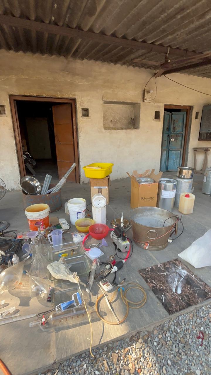 तलाशी के दौरान अधिकारियों ने कुल 5.894 किलोग्राम मनोदैहिक पदार्थ बरामद किए। इसमें 107 ग्राम मेफेड्रोन पाउडर, 3.961 किलोग्राम मेफेड्रोन कच्चा माल और 1.826 किलोग्राम एल्प्राजोलाम पाउडर शामिल है। इसके अलावा, मेफेड्रोन के निर्माण में प्रयुक्त लगभग 200 किलोग्राम रसायन, अत्याधुनिक प्रयोगशाला उपकरण तथा मादक पदार्थों की तस्करी में इस्तेमाल की जा रही एक बाइक भी जब्त की गई है।प्रारंभिक पूछताछ में खुलासा हुआ है कि आरोपी अपने एक सहयोगी के साथ मिल कर इसी परिसर में अवैध रूप से मेफेड्रोन का निर्माण कर रहा था। सभी जब्त सामग्री को एनडीपीएस अधिनियम, 1985 के तहत कब्जे में लिया गया है।
